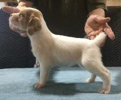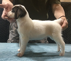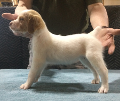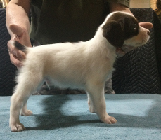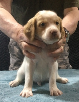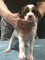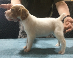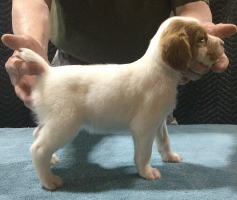 The litter whelped March 22, 2025 with seven healthy pups. We have 3 white and orange females, 1 white and orange male and 3 white and liver males. Currently 1 female remains unreserved. All of the males are available to new homes.